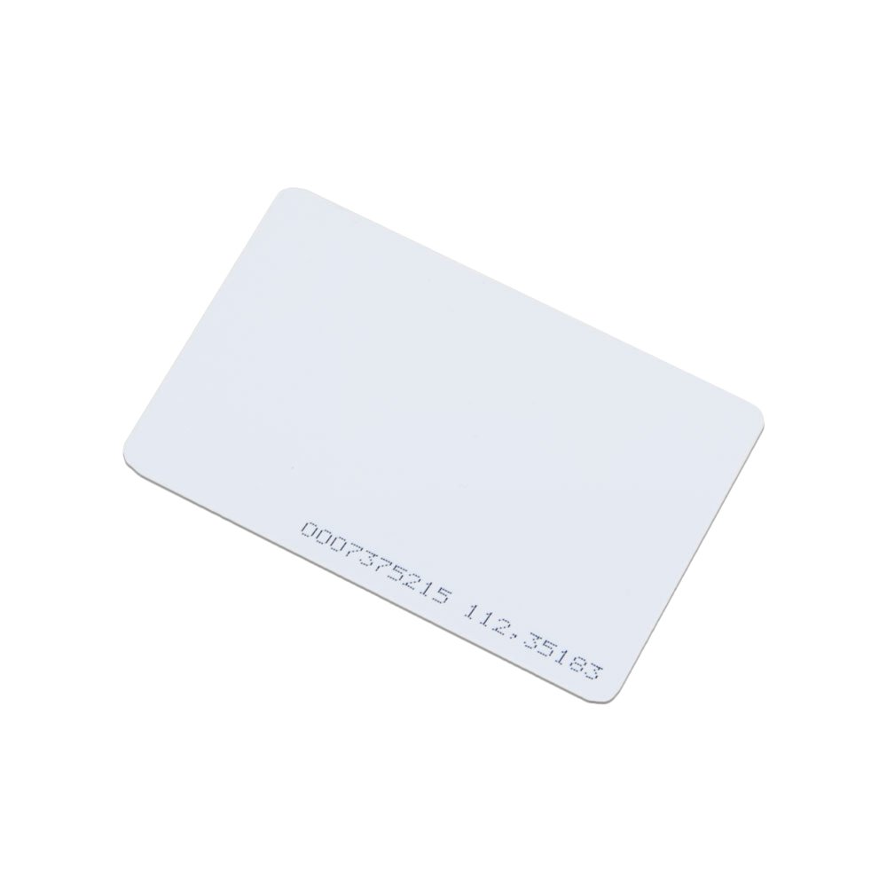 Тип: EM-Marine 125 кГц. Розміри: 86 x 54 x 1.6 мм. Дальність зчитування: до 80 см зі зчитувачем ZKTEco KR1000. Колір: білий. Матеріал: пластик