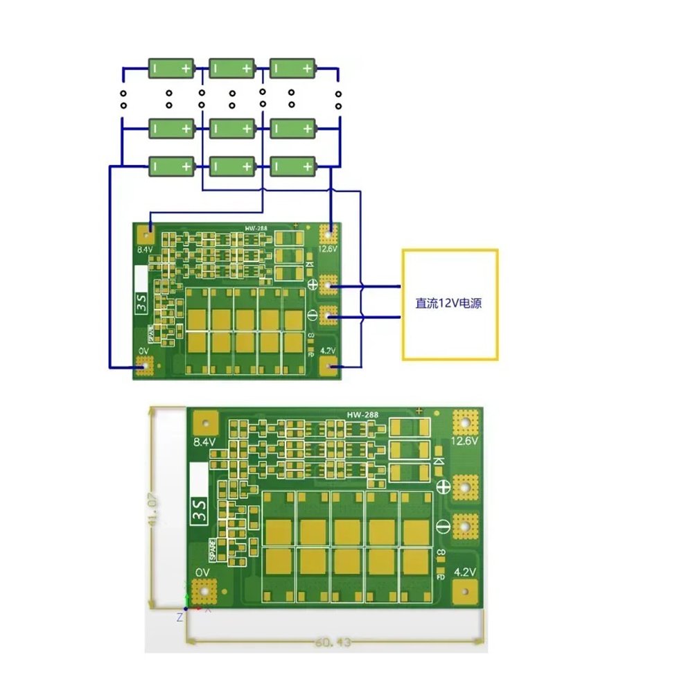Плата заряджання та захисту OKY3399-5 (BMS 3S 40A Li-ion) з балансуванням акумуляторів Li-ion (у тому числі 18650, 21700 та інші). Зменшене тепловиділення. Функція фільтрації перешкод. Початкова потужність: 220 Вт (W). 10 транзисторів MOS на платі. Струм безперервного розряду: у піку 40 А. Балансувальний струм: 100 мА. Напруга під час заряджання: 12.6 В