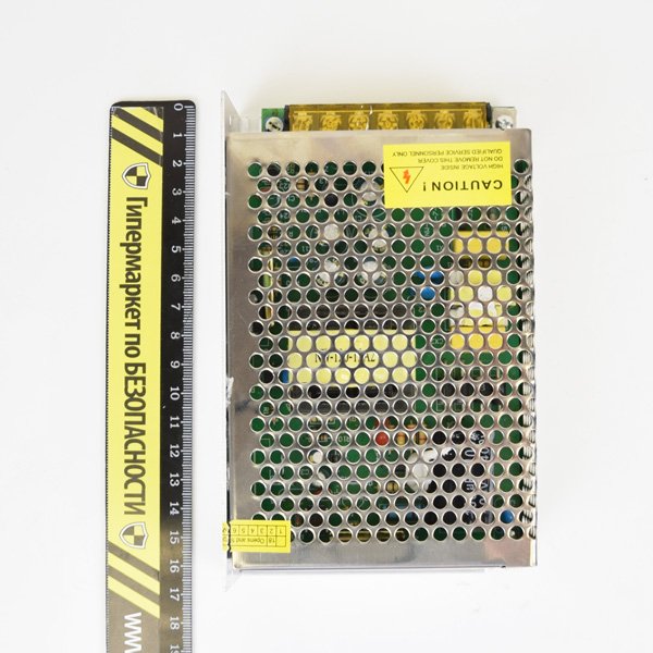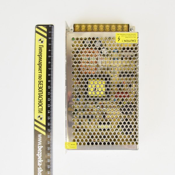 Блок живлення імпульсний, двоканальний, вихід: +12 В / 10 А, клемник; вхід: ~ 176-245 В, клемник; металевий перфорований корпус. Розміри 98 x 158 x 43 мм.