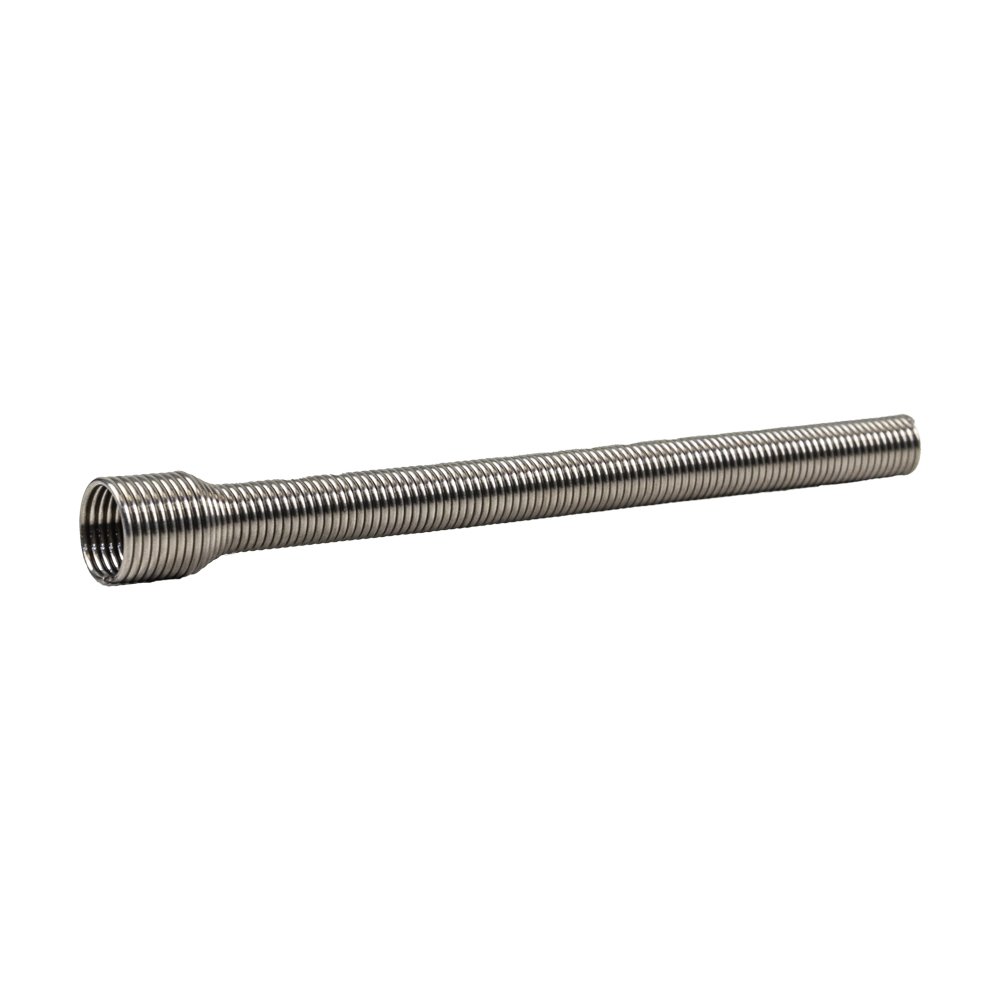 Гнучкий перехід врізний довгий, використовується для захисту кабелю від пошкодження і деформації. Складається з гофрованої труби і кріпильних елементів. Зроблено зі сплаву металів (в основному цинк), потовщений метал покритий високотемпературної емаллю. Тип встановлення: вуличний / внутрішній. Розміри 542 x 24 x 17 мм. Внутрішній діаметр 12 мм. Вага 400 грам. Сірий колір.