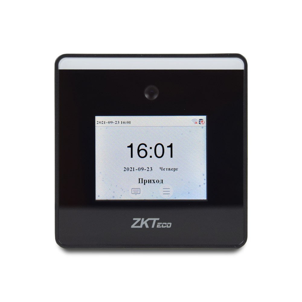 Термінал обліку робочого часу і контролю доступу з ідентифікацією по геометрії обличчя. Кількість шаблонів облич: 800. Кількість користувачів: 800. Кількість записів: 150000. Дисплей: TFT 2.8″ сенсорний. Пам’ять: 512 МБ RAM / 512 МБ Flash