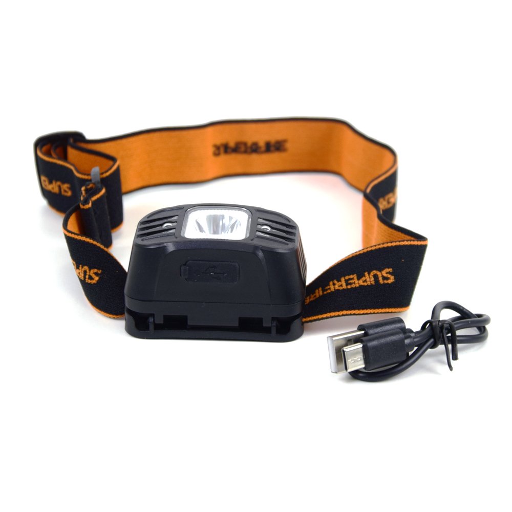 • Налобний ліхтар SUPERFIRE HL75-A, що перезаряджається, з датчиком руху і потужністю 2 Вт