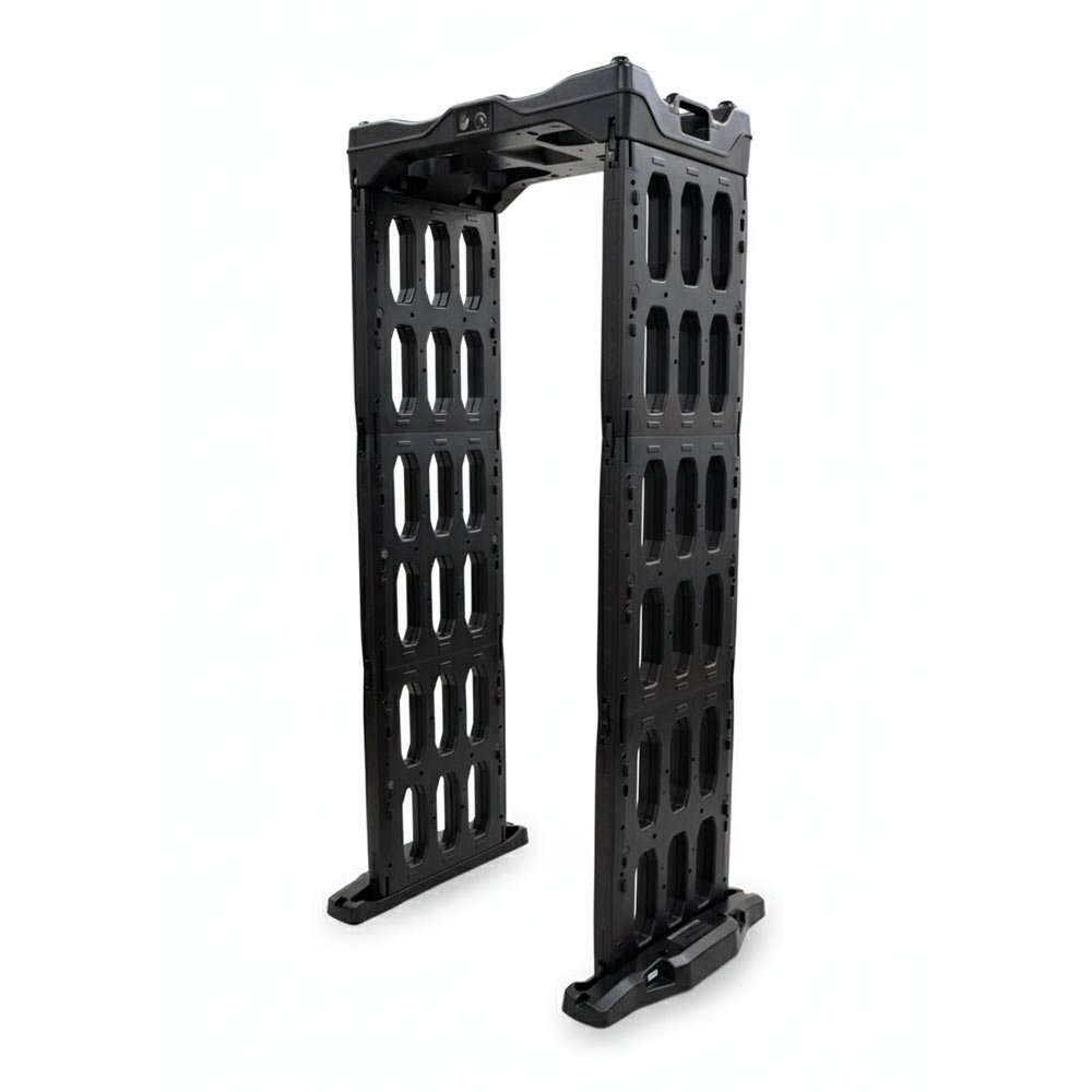 Ключова особливість цього металошукача – це компактність і простота використання. Складається з розбірних секцій – 6 ножних, голова, підставки. Всього одна людина може за 5 хвилин зібрати металодетектор і організувати мобільний пропускний пункт навіть просто неба.