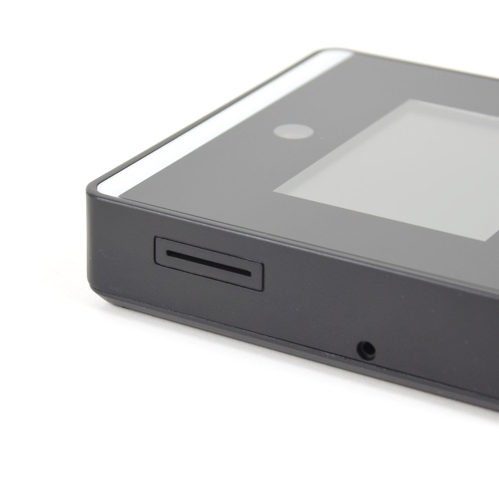 Термінал обліку робочого часу і контролю доступу з ідентифікацією по геометрії обличчя. Кількість шаблонів облич: 800. Кількість користувачів: 800. Кількість записів: 150000. Дисплей: TFT 2.8″ сенсорний. Пам’ять: 512 МБ RAM / 512 МБ Flash