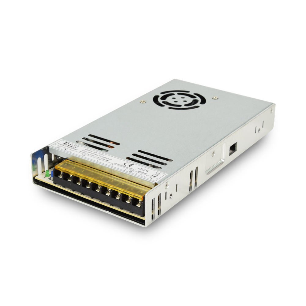 Блок живлення імпульсний. Вхід: AC 100-240 В, 50/60 Гц, 8 А. Вихід: DC 24 В, 14.6 А, 350.4 Вт. Підключення: клеми. Захист від навантажень, КЗ, перегріву. Вбудований вентилятор охолодження. Металевий корпус. Розміри: 215 х 115 х 30 мм.