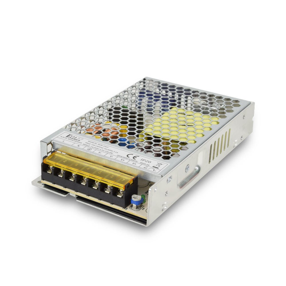 Блок живлення імпульсний. Вхід: AC 100-240 В, 50/60 Гц, 3.1 А. Вихід: DC 24 В, 6.5 А, 108 Вт. Захист від перевантажень та КЗ. Підключення: клеми. Металевий перфорований корпус. Робоча температура: від -30 до +70°C. Розміри: 158 х 95 х 30 мм.