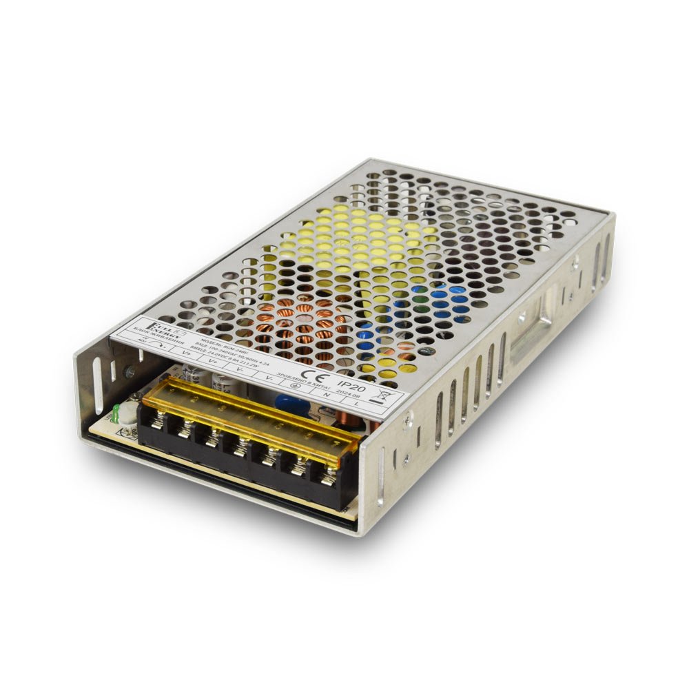 Блок живлення імпульсний. Вхід: AC 100-240 В, 50/60 Гц, 4.2 А. Вихід: DC 24 В, 8.8 А, 211.2 Вт. Захист від перевантажень та КЗ. Підключення: клеми. Металевий перфорований корпус. Робоча температура: від -30 до +70°C. Розміри: 158 х 95 х 30 мм.