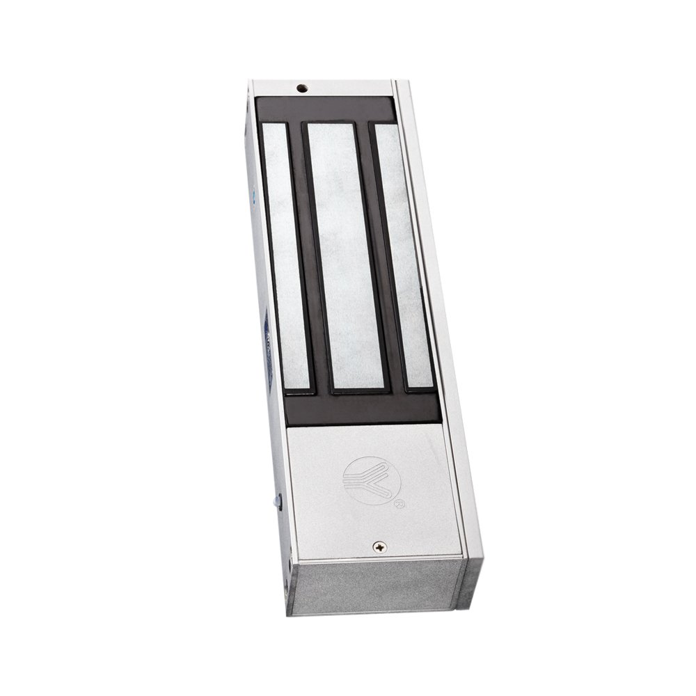 Електромагнітний замок зі світловою індикацією, датчик стану дверей, таймер затримки, накладний, сила утримання 750 кг, Живлення: DC12V / 420mA, DC24V / 210mA. Розміри: 280х81,6х46 мм. Підходить для дерев’яних, металевих та протипожежних дверей.