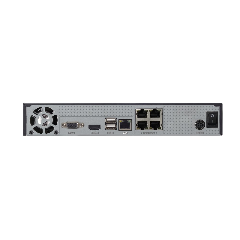Кількість каналів: 8; Стиснення: H.265, H.264; Макс. роздільна здатність запису: 12 Мп; Відеовиходи: HDMI, VGA; Аудіовихід: RCA; Зберігання даних: 1 слот для SATA HDD до 6 ТБ, 1 eSATA порт для HDD до 6 ТБ (макс. загальна ємність зберігання 12 ТБ), в комплекті 1 x 2 ТБ SATA HDD; Інтерфейси: 8 x RJ-45 10/100M із підтримкою PoE для IP-камер, 1 x RJ-45 10/100/1000M LAN/WAN; 2 x USB 2.0; Живлення: DC 48-53 В / 10 Вт (без HDD & PoE); Розміри 260 x 41 x 230 мм