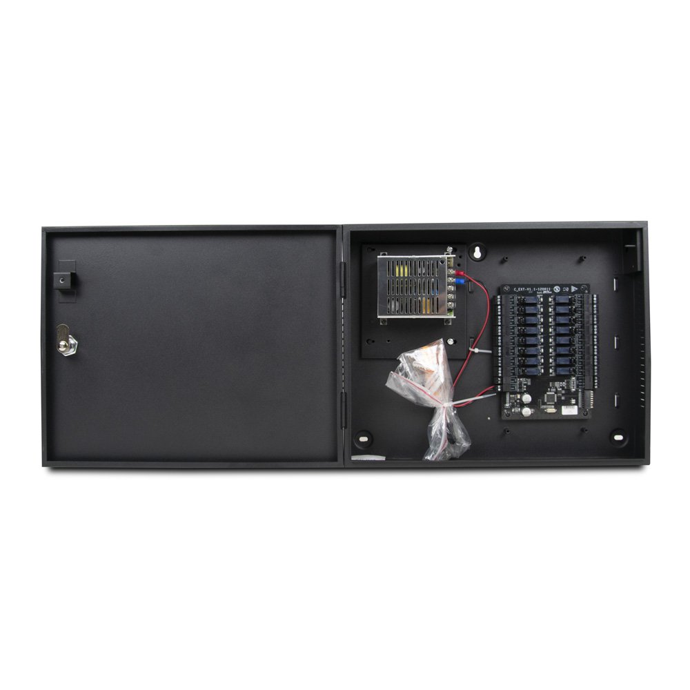 Комплект ZKTeco для обмеження доступу у ліфт включає: контролер керування ліфтами у боксі ZKTeco EC10 Package B, плата розширення для 16 поверхів у боксі ZKTeco EX16 Package A, вологозахищений зчитувач EM-Marine, Mifare і NFC ZKTeco KR310, програмне забезпечення ZKBS-ELE-ONLINE-S1 для 1-10 контролерів EC10