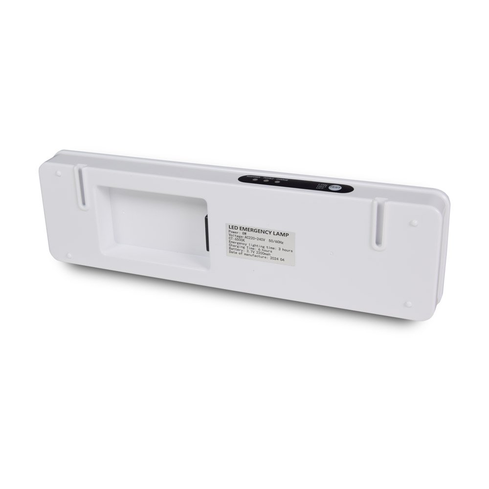LED аварійний світильник на акумуляторі. Потужність лампи: 3Вт. Світлова температура 6500K (білий холодний). Час роботи: 3 години. Час заряду 6 годин. Акумулятор: Li-ion 3.7В, 1200мА*год. Живлення: AC110-240В. Розміри: 205 х 56 х 30 мм.