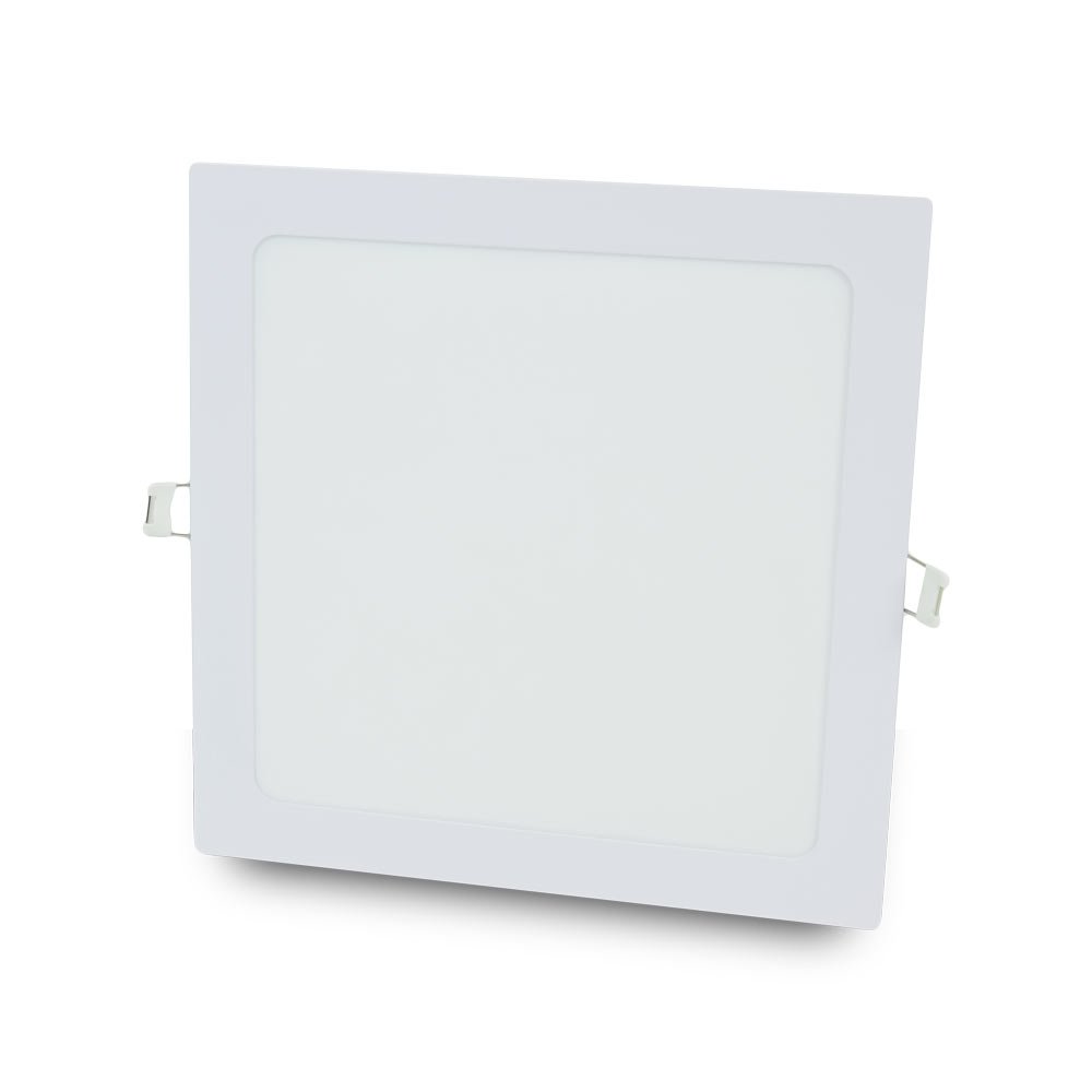 Потужність: 18 Вт. Спосіб монтажу: вбудований. Напруга живлення: AC 85-265 В. Колірна температура: 6500К. Світловий потік: 1450 люмен. Ресурс: 50 000 годин. Індекс передавання кольору, Ra (CRI): > 70. Ступінь захисту: IP20. Форма: квадрат. Матеріал корпусу: алюміній. Колір: білий. Розміри: 225 x 225 x 28 мм. Розмір врізного отвору: 205 x 205 мм.